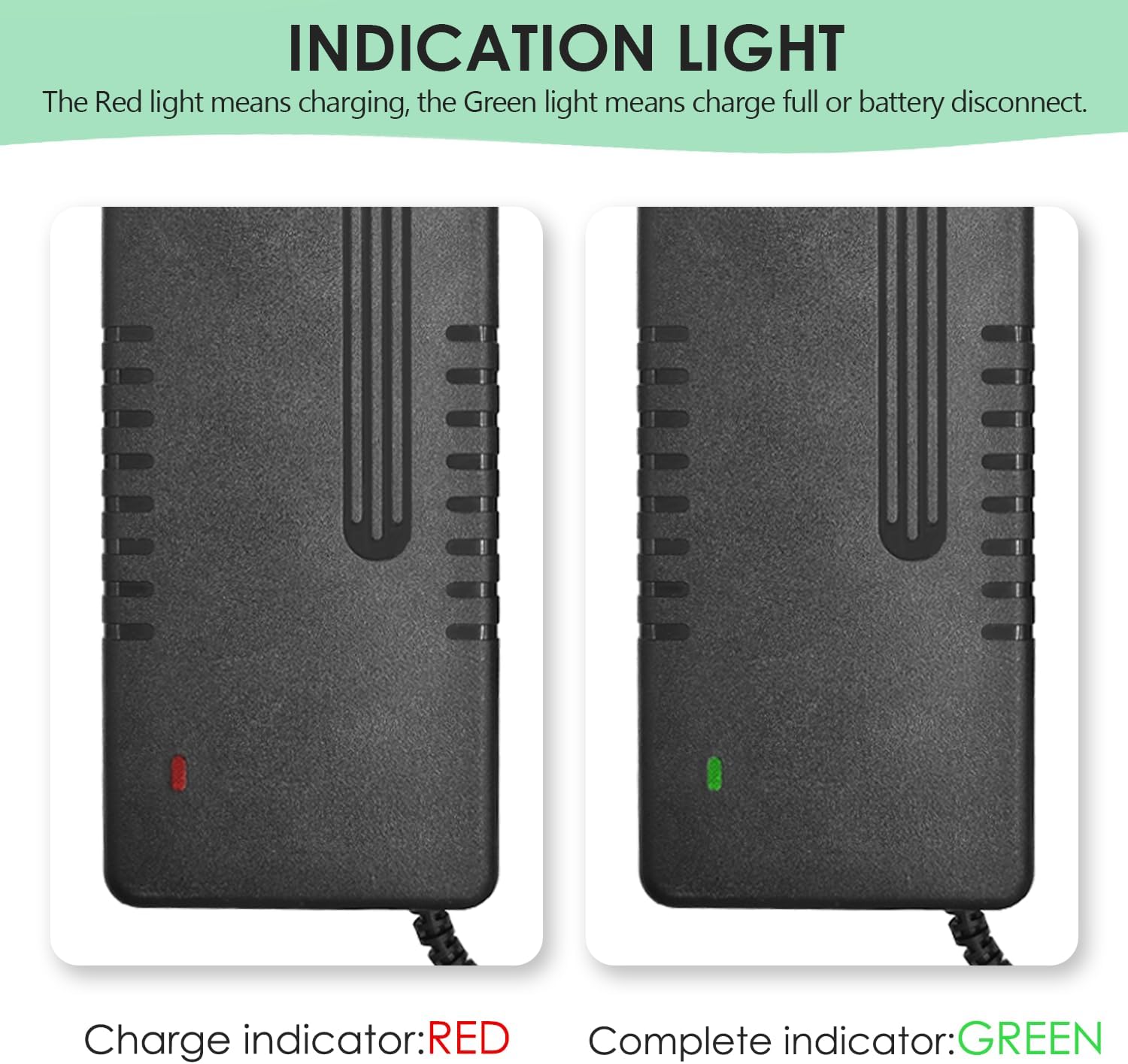 【Safer & Smarter Charging 】48v lithium battery charger is equipped with a Cooling Fan, featuring over-voltage/current/temperature/short-circuit safeguards + premium casing. Note: Fan noise during operation is normal for heat dissipation.