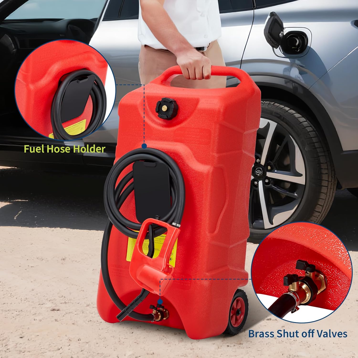 Portable All-Terrain Design: Easily transport fuel across any jobsite with 6″ heavy-duty wheels and a collapsible tow handle. The lightweight HDPE body (40% lighter than steel) and side handles ensure easy portability from garage to field. Integrated Wheel Design more Durable plus Upgraded wheel materials ensure smoother rolling and require less effort for effortless transport.