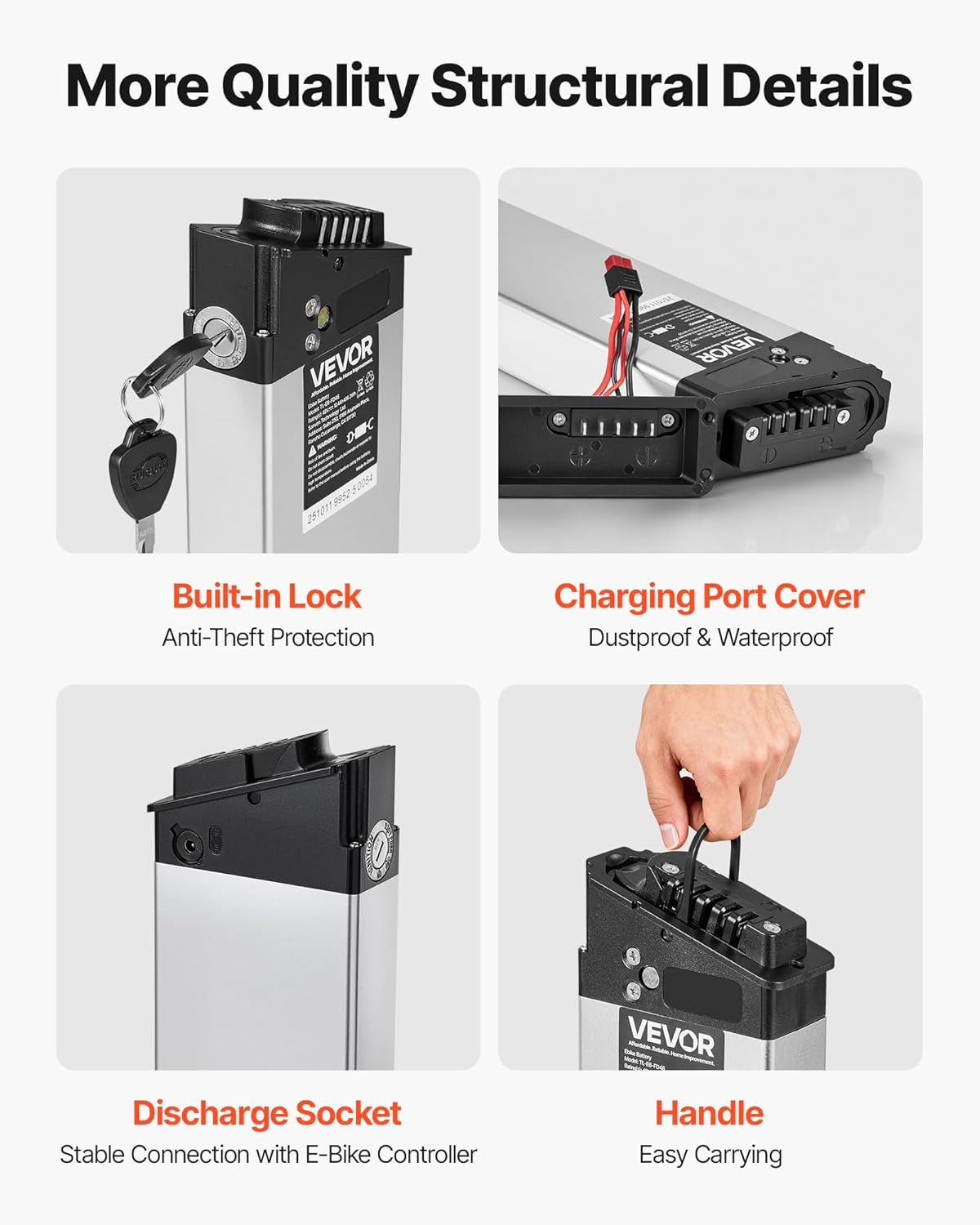 Anti-Theft & Sturdy: Built-in lock keeps the e bike battery replacement secure from theft, while the durable aluminum alloy and PC housing delivers lasting protection for your on-the-go lifestyle