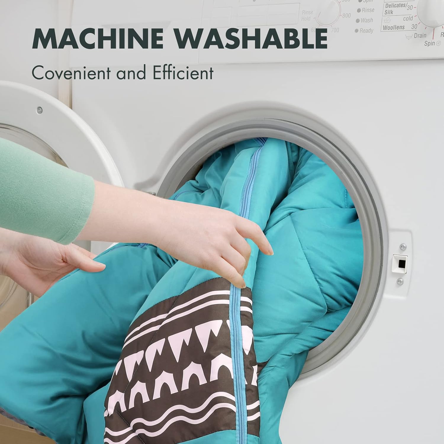 【AWESOME NO-SNAG ZIPPER】 This sleeping bag for camping is equipped with a two-way zipper with 2 pullers and a full-length anti-pinch strip, allowing you easily pull back and forth inside or outside. Wrap-around zipper allows you the freedom to vent the bag or open it completely into a blanket, providing freedom for your hands or feet.