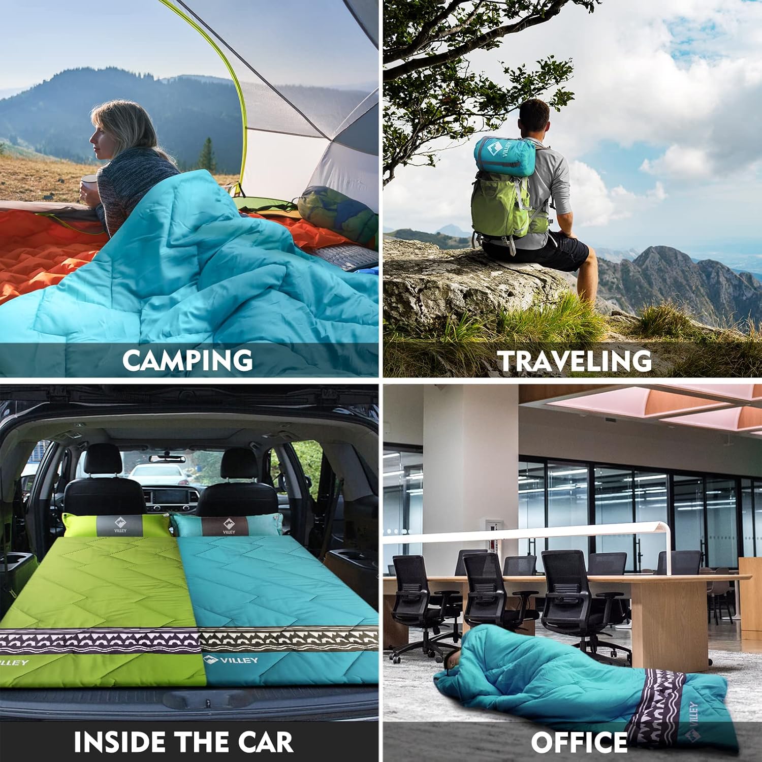 【USE FOR 3 SEASONS】This VILLEY sleeping bag design with the full-length draft tube, prevents air leakage, adding more warmth in windy weather. Perfect for spring, summer, and autumn. Temperature Rating: 32℉-50℉. Ideal for backpacking, camping, and hiking even used at the office or home.