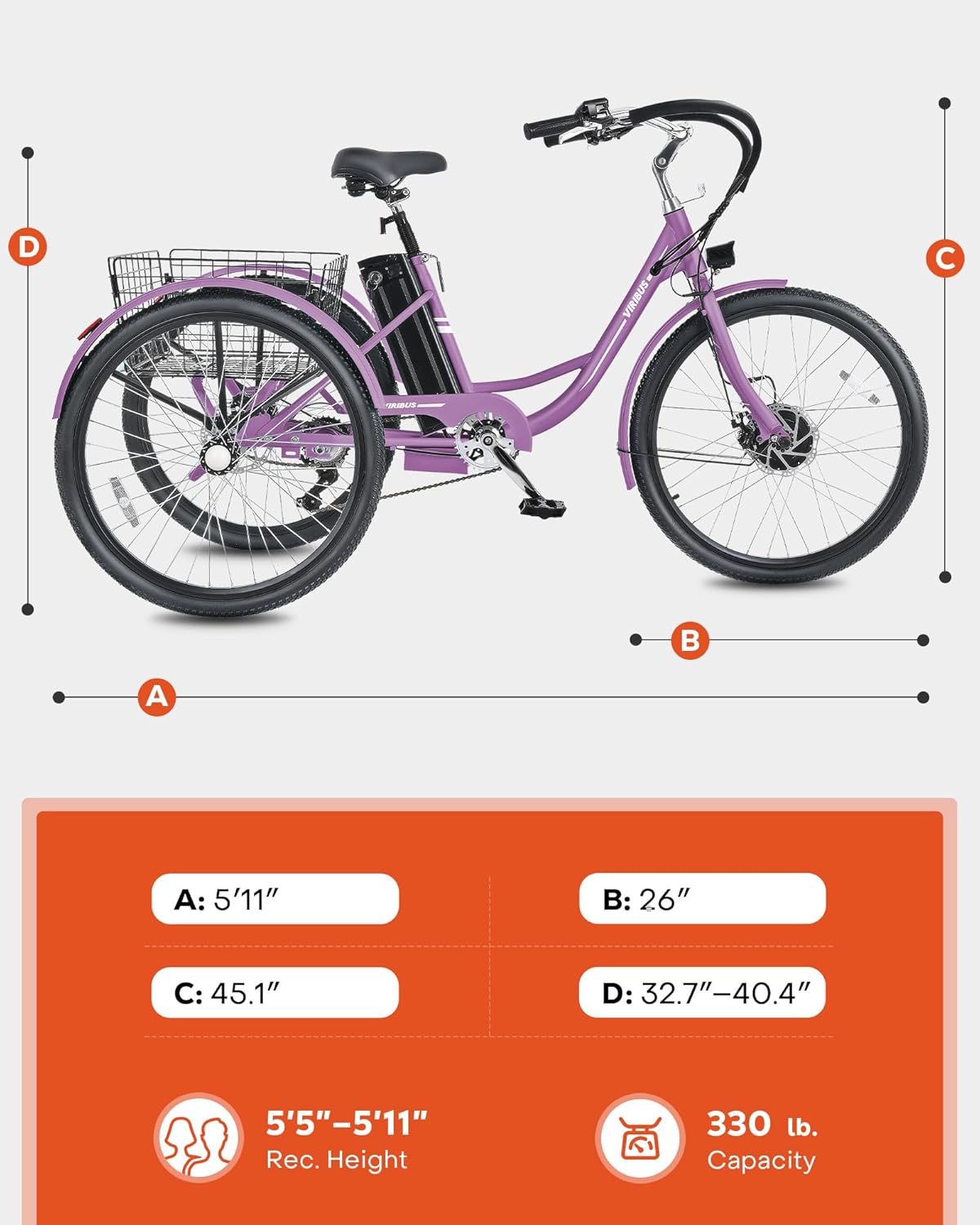 Be the first to review “VIRIBUS Electric Tricycle for Adults, 24 26 inch Electric Trike with 468Wh Removable Battery, 250W/350W(Peak 500W) 3 Wheel Electric Bikes for Seniors, Motorized Adult Tricycles Women Men 330 lb.”