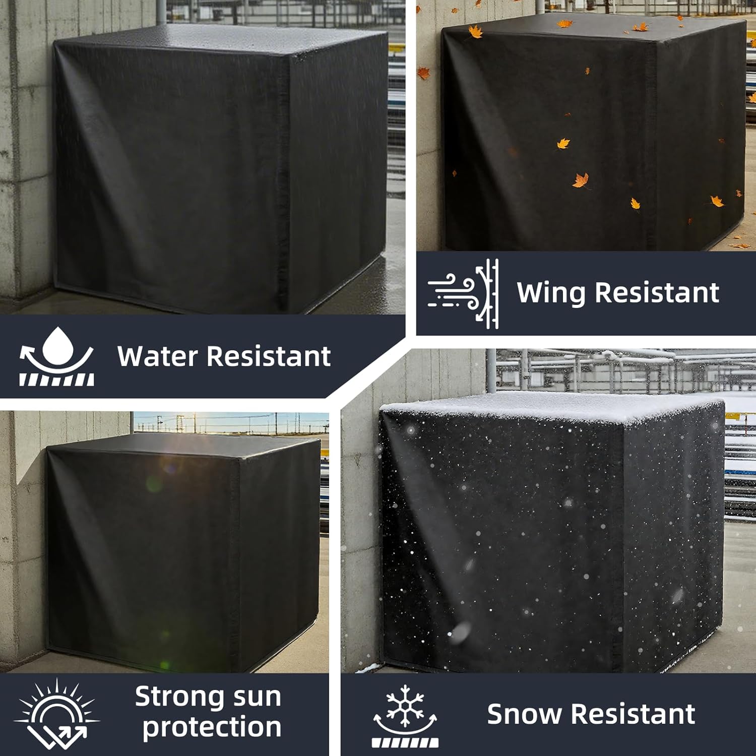Weatherproof Design: Features a waterproof coating, UV-resistant layer, elastic hem cord, and adjustable bottom strap for a secure fit, withstanding heavy rain, strong winds, and intense sunlight.