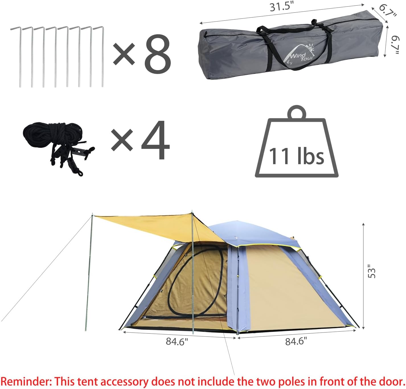 Wind Tour 3-4 Persons Instant Automatic Family Camping Tent Quick Set up Tent for Beach, Traveling, Hiking, Mountaineering, Outdoor Activities