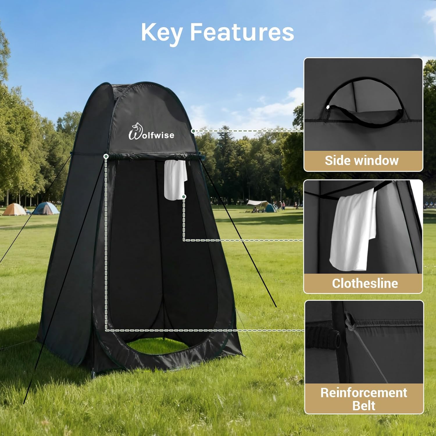 Be the first to review “Wolfwise Pop Up Shower Tent, Portable Instant Changing Tent with Ventilation Window & Carry Bag, Privacy Bathroom Toilet for Beach, Camping & Outdoor, Width 40 “, Height 75 “, Black”