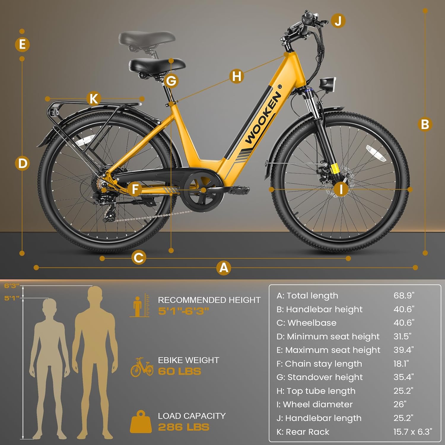 Be the first to review “Wooken 26″ Electric Bike for Adults, 1000W Peak Commuter Ebike with 48V 10.4Ah/15Ah Removable Battery, Step Through E-Bike 7 Speed City Electric Bicycles for Women Men”