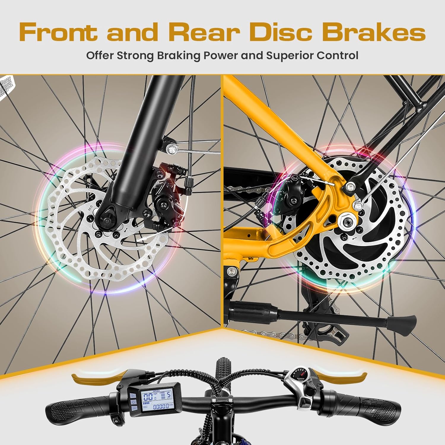 ✅ PREMIUNM COMFORT: Ride in confidence with an aluminum alloy frame, adjustable front suspension, and dual disc brakes for superior stopping power. The intuitive LCD dashboard tracks speed, battery, and mileage, while the 7-speed transmission and the 26 x2.1″ tires handle any terrain