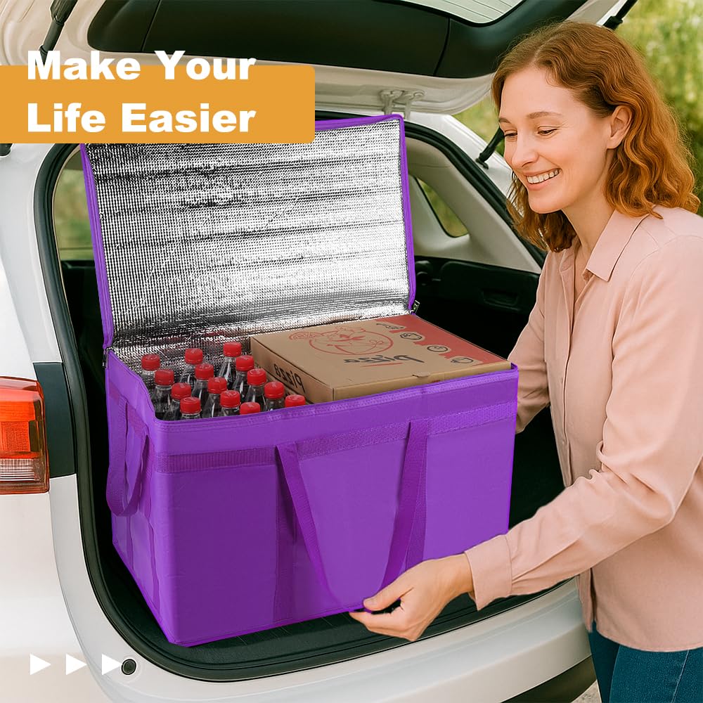 XXXL Insulated Food Delivery Bag – Reusable Thermal Cooler Grocery Bags for Catering & Delivery, Pizza Carrier for Events, Large Capacity Bag Keeps Food Hot/Cold for Shopping, Commercial (Purple, 1PK)